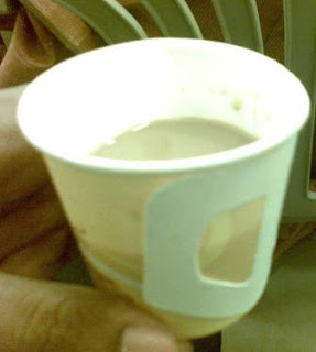 At 6.40 am we got some hot coffee. The coffee was GREAT ! I guess it was filter coffee. No, not Bru. Filter coffee. The coffee itself was besides the point. It was the cup that mattered.