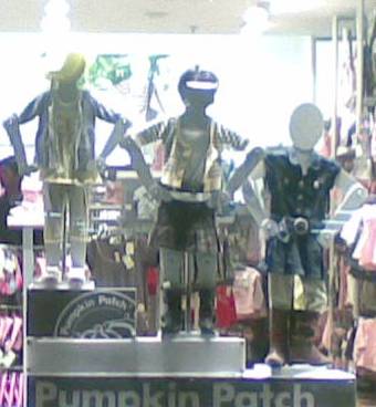 In quick time, i spot a kid that emerges from beneath the mannequins. She still is talking to the mannequins when i see her first. My eyes twitch like an antler’s ears, at the sound of a rustle. I see two adults at the background.