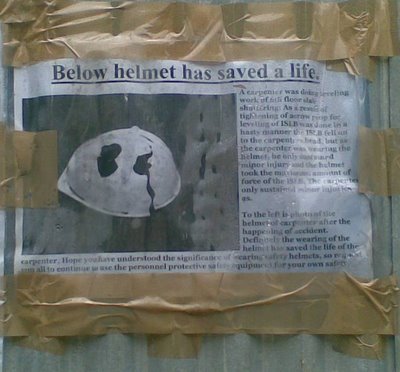 I found this at the Hiranandani Construction site at Powai. I thought of it as an important message to workers, urging them to eschew the helmet ! I loved the picture, and the write up that came along with it, about a carpenter whose life was saved because of the helmet. If it was targeted at the workers, i wonder why it was in English ?!?