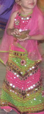 But tell me what would you think when a small child, decked up in finery, attempts to play Dandia with a spirit that tugs your heart and an impish charm that makes you wish that you could somehow capture that innocence in the palm of your hand and broadcast it to the world!