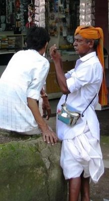 This is a mobile ‘ear cleaner’ ! He moves around on foot, and i was impressed with the fine array of ear cleaning tools that he carried !