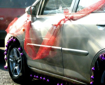 And of course, some private moments to the couple inside. Those dangling, moving, violet balls (that moved ever so violently with every pothole), caught every body’s attention. Nobody looked inside the car !