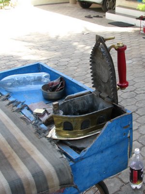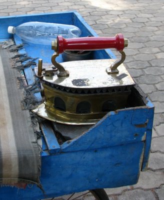 In the southern districts we have this push cart iron. The chap who ‘irons’ , ushers his cart around and presses your clothes for a fee ! A common sight in Madurai ! Its not common in the big cities where electricity rules and ‘powered’ irons press !