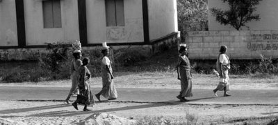 Ducks going about whatever they do in water. Still lakes. Lakes that were. Stiller mountains. Far away songs. A revving engine. Old men beneath coconut trees. Children in the green fields. Barren lands. All of them whizz by.