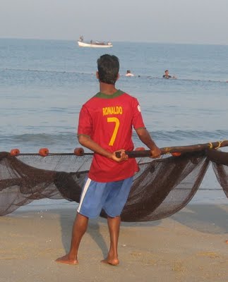 The eye brows only half arch. That too, in irony. Looking at this ‘Ronaldo’ netting the small fish on a Goan shore !