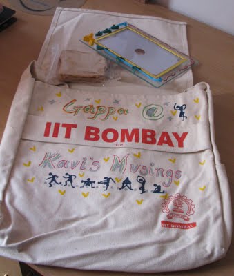 Gappa bowled me over with a IIT Bombay bag, with appropriate customised art for each of us that met. Harekrishnaji came with a lovely hand crafted photo frame. Cabbages and Kings with a delicacy made of jack fruit !