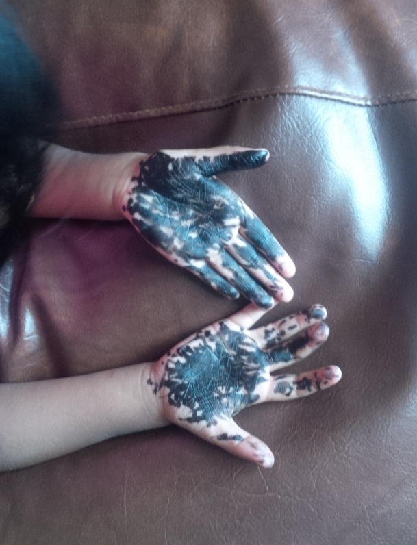 I was on the phone for precisely two minutes and thirty three seconds. When I closed the call, the phone had announced that. Add another thirty seconds for that silly trance. But that was all it took for the little miss to train the whiteboard marker on to her palms. Both palms. With ambidextrous efficacy that would give Sourav Ganguly goosebumps.
