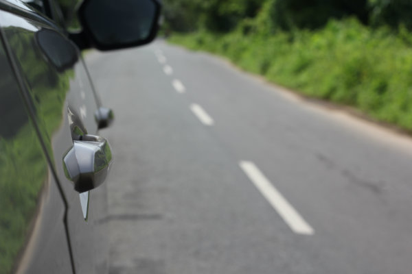 Its was a small road. A cowherd and his set of buffaloes were walking towards us, on our lane. I had steered the car to stay a safe distance away from the buffaloes. As we crosses them, one buffalo, on a whim moved to the centre of the road and swung his tail to hit the rear view mirror on the left. A couple of feet from where Nandita is sitting. The sound was deceptively deafening. No collateral damage to the car. The last I saw the buffalo, there seemed to be none there either.