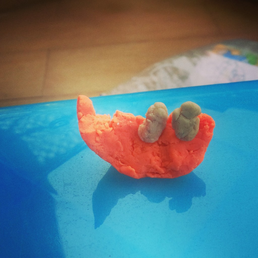 We were busy shaping a very pliant assortment of play dough with all our might. Me and the little miss. As the play dough took shapes that an adult would describe as a useless lump of waste material, her imagination flew into another sphere. I tried clambering on to her flight, tossing pressing worries aside and co-navigating vast alleys of her imagination. After about two hours of intense work with the play dough, we had a few more lumps to show. And that was that. But to her, it was the world. Of particular interest to her was a sad red lump of what was intended to be a car. In a matter of minutes her tiny fingers messed around with it for some more time. Before she announced “Appa, look at the boat”.
