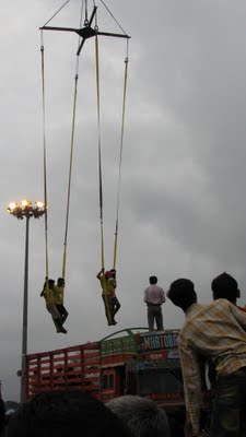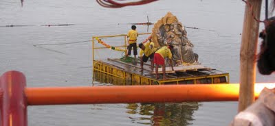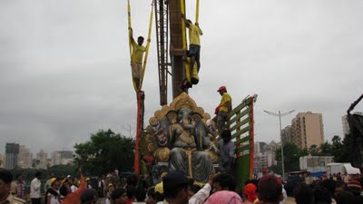 They have those huge cranes, that lift off the Ganpati idols that are brought in trucks. Taken to a deeper part of the lake and ‘immersed’ ! Its an an awesome sight.