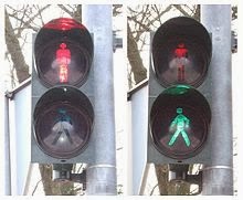 The man seen on the traffic light is called the Amplemann. He was introduced on the traffic signals of East Berlin in 1961 by a traffic psychologist Kalr Peglau, with the argument that road users react more quickly to appealing symbols.
