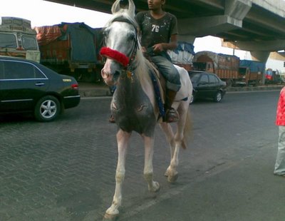 Immediate clamour ensued. A small door opened. A smattering village got out. And another got in. They were all headed towards some place else. Out off Mumbai.And this was the scene. At a busy intersection on the highway that was to be taken to reach Pune.