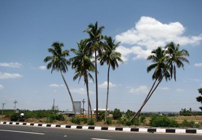 Like this one. When your heart skipped a beat to see a seeming synchronicity in randomly arraigned coconut trees set against a blue backdrop on the banks of a spanking new highway. Made on agricultural land.
