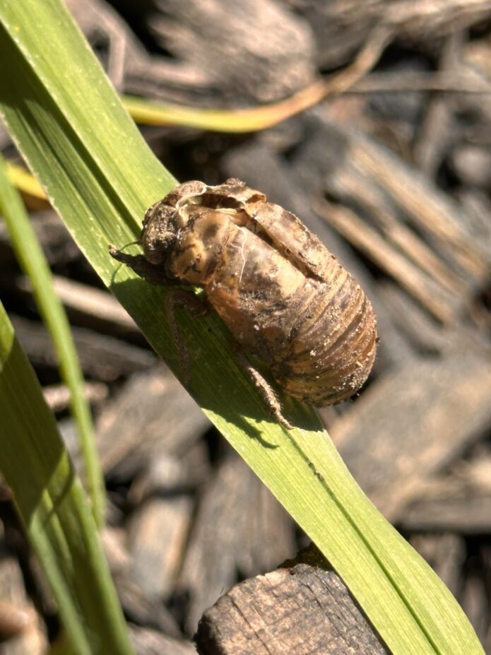 A cicada had grown inside it and, at some point, calmly stepped out. Growth completed. Old skin left behind. No drama. No hurry. Just a quiet exit under the Texas sun.